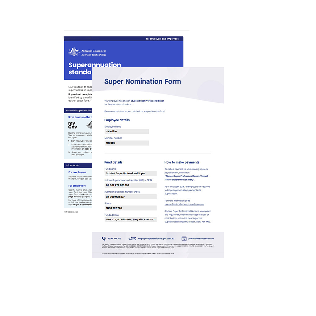 After you join, you will be emailed a pre-filled super choice form and letter of compliance. Give this to your employer so they know where to pay your super money.